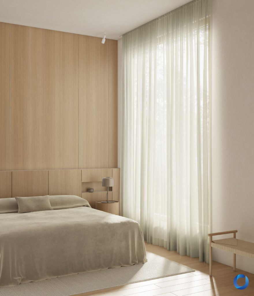 - Langsir Lantai ke Siling: Memilih langsir panjang penuh yang memanjang dari siling ke lantai menambah sentuhan dramatik sambil memanjangkan dinding secara visual. Pilihan reka bentuk yang ringkas ini boleh menjadikan bilik terasa lebih besar